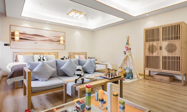 入住的森林氧吧房,增加费养离子,帮助睡眠非常棒,前台小姐姐服务优秀,大厅拍照很出片,有免费的汉服体验和书法体验,还有积木和图书室小朋友非常喜欢楼上,还有观景台和小兔子多都江堰半灯会特别的热闹