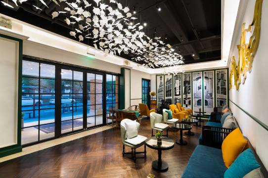 酒店聘请资深设计师进行艺术打造,枕水西子湖,品民国风情。酒店紧邻湖滨商圈,河坊街,南宋御街,吴山城隍阁、胡雪岩故居等,附近有1号线和7号线地铁口,杭州站/杭州东站,都可乘地铁1号钱到达酒店。且酒店门口就有网红公交车WE1314路直达西湖、in77、断桥残雪、雷峰塔,等各个景点。地处繁华却平静,智能家居、艺术体验和24H金钥匙管家式服务是酒店的服务核心。