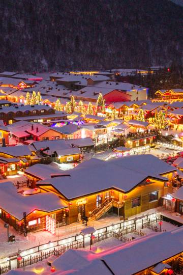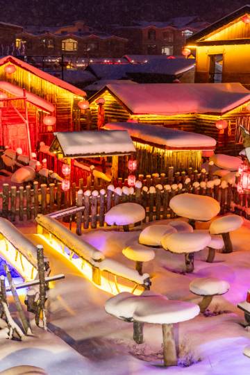 白天的雪乡,雪蘑菇屋、挂满灯笼的街道,每一帧都是冬日的温柔诗篇。美得就是现实版童话世界!