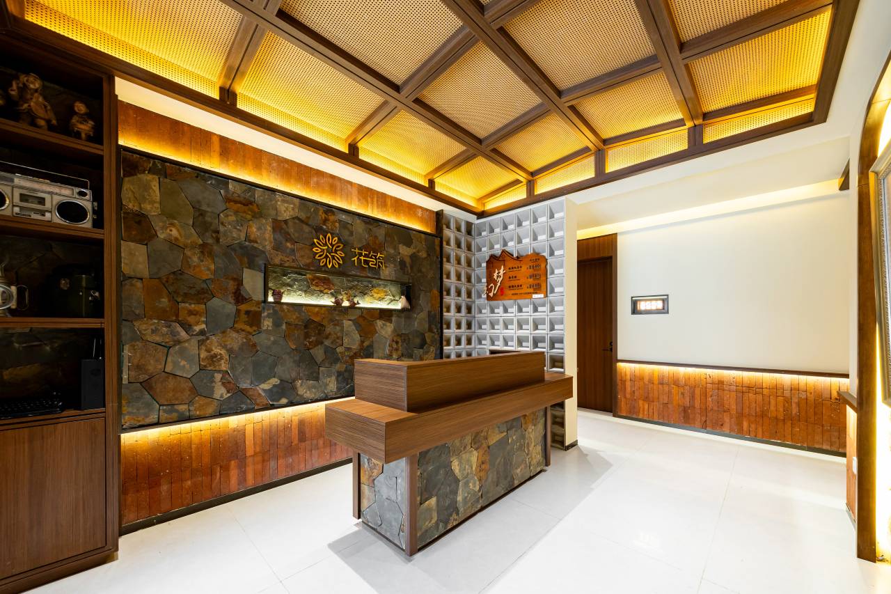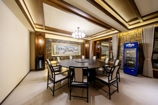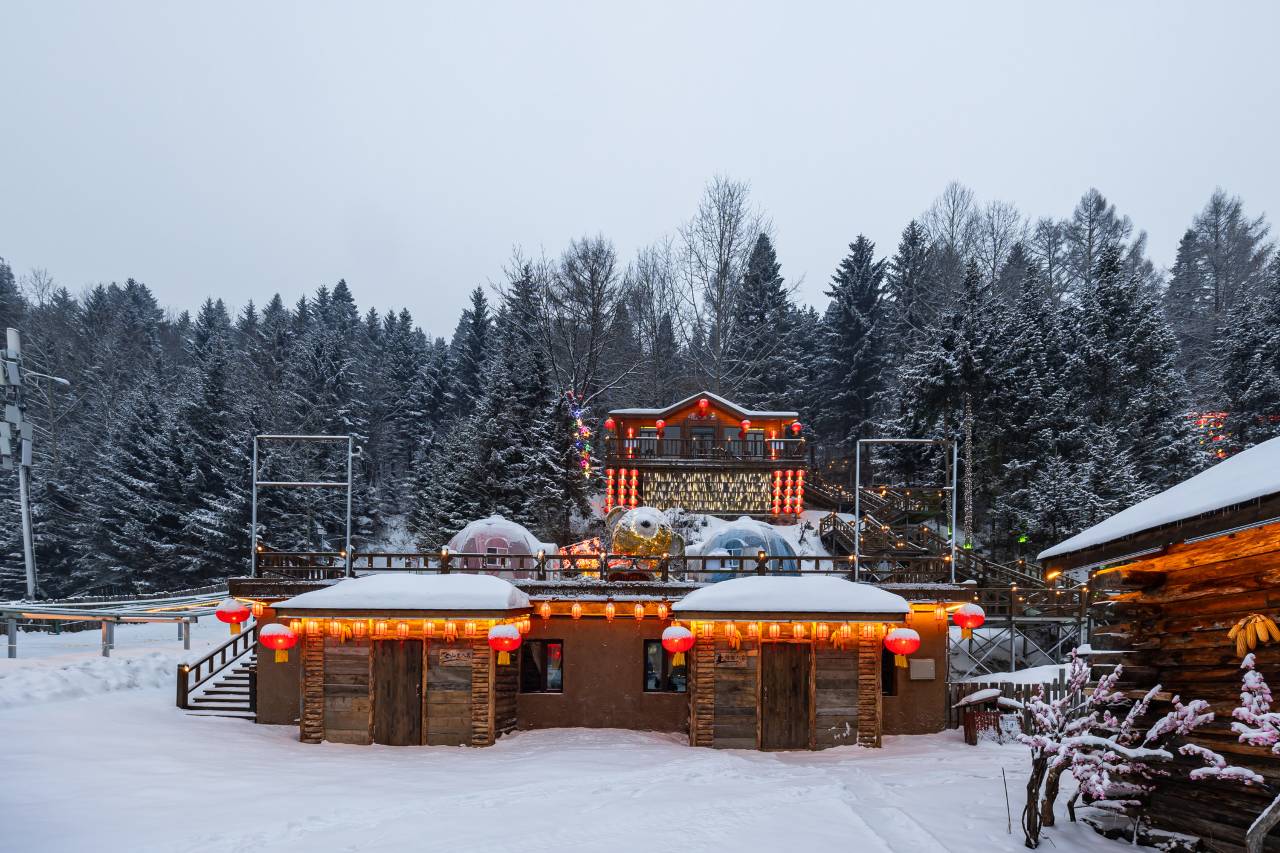 客栈以东北猎户人家的古朴风情为骨,以林海雪原的静谧气韵为魂:青瓦上覆着蓬松厚雪,红灯笼在檐角摇曳生光。公区内,茶香与细语交织,庭院中落雪簌簌可闻;观景台可揽收雪乡全景,沿栈道可漫步至棒槌山巅。网红灯笼墙点亮雪夜,多功能厅与包间则兼顾欢聚与私密,让每一次相聚都浸透雪色与暖意。