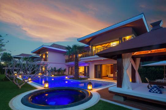 别墅套内面积300㎡起,加上户外500㎡起的草坪,畅想宽敞明亮的旅居环境。别墅房型包括从两居到五居的泳池别墅、总统别墅、星空Party别墅等,每套别墅均配备独立厨房,能满足从家庭到企业定制的所有居住需求,酒店特有的管家服务可细心照料您和家人在度假期间的吃、住、行、娱、购。从个性美食到宴会定制,精心雕刻您与家人在旅途中每一秒幸福时光。