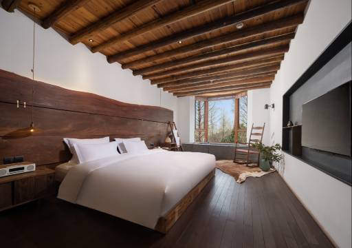 九野的每一处却都精心设计过,打开房门时被宽敞程度而感到惊喜,每个房间都可以看到风景,让这份属于自然的宁静,承托出你最美好的山间回忆。建筑与景观庭院与与周边环境之间的对话,永远有家的温暖和心动,永远舒服。