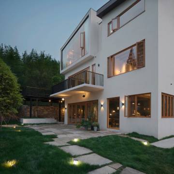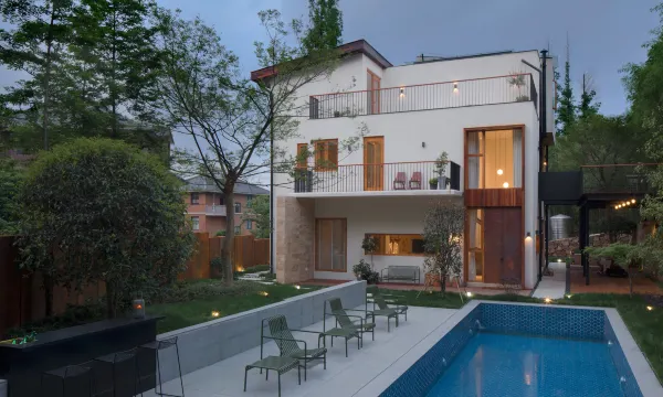 2号楼的1层空间,是简约清新的公共厨房、餐厅,齐全的设备,与家人、朋友分享山里美食。延续1号楼自然、精致风格的基础上,户外草坪,泳池、二层露台公区非常私密适合开派对。