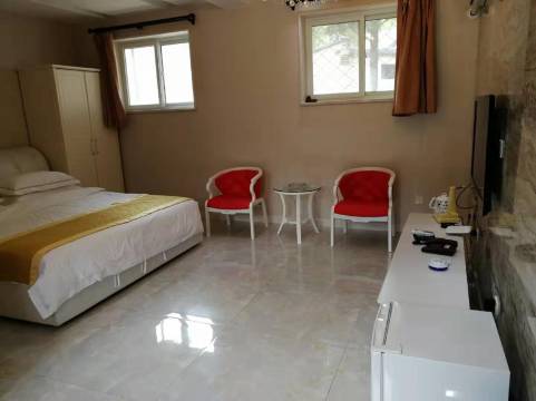 山庄环境优美安静,在109国道旁,三面有山,一面有永定河,想溜达可以去后山的塔楼逛逛,还可以下到永定河边,有人在河边钓鱼。我们住的是四室一厅,携程说没有早餐,但山庄赠了早餐。该山庄以前是粮库,由粮库改成,房型高,房屋凉爽,洗浴用品可以从登记处自取,浴巾厚实干净,热水充足,床垫是偏软性,喜欢软床的该高兴了,但其他房型有榻榻米式,估计也会有硬床。最好的是,1.8米的大床,每间配的是两床被,太贴心的安排了。服务人员也很热情客气,但接待也干净利落,不显话多。特别适合,在门头沟游玩需要住一晚的人,或者就是朋友们寻求安静,在风景优美,环境清凉的地方,聚会聊天休息的类型。