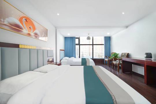 本酒店属于精品酒店,酒店拥有多间不同风格温馨舒适的客房,其中有商务大床房、商务标间、豪华套房及圆床房。满足您多样化的需求。酒店客房配有无线网络、有线电视、中央空调,提供24小时热水和停车场。酒店全体员工竭诚欢迎您的入住并提供个性化服务!