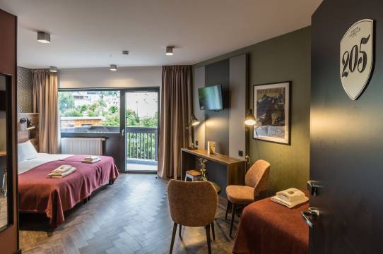 非常棒的酒店,设施齐全。一定要去屋顶桑拿房看看,那里的山景真是美得令人惊叹!房间很漂亮也很干净,员工服务周到又乐于助人。这家酒店就在市中心,从前门就能看到火车站。真的是一个很不错的酒店,我强烈推荐!