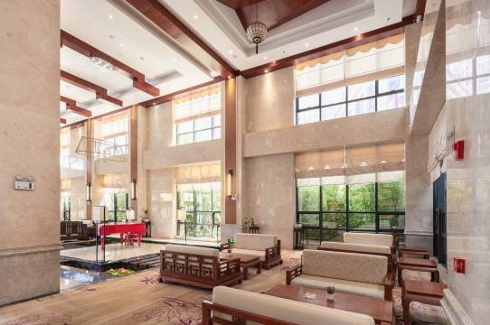 酒店占地宽阔,外观气派。内里中式装修,典雅大气。3部电梯,上下顺畅。家具设施齐备,房间宽敞明亮。房间提供的纸品不错。午后两点前退房比12点前退房待客更厚道。早餐就餐环境好,菜品选择多,但盘、碗、杯等餐具太袖珍。