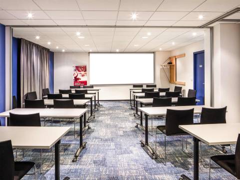 "经过 Laita 进入 Finistere。继续行驶一小段距离便可到达酒店。我们敬候您的光临。宜必思全天候 24 小时营业"- 主管 Emmanuel Foucault。宜必思坎佩莱酒店舒适温馨,适合商务和休闲住宿。客房宽敞,可入住 4 人。酒店设有可供您放松的休闲酒吧、明亮的餐厅、清新凉爽的露台以及两个可用于举办会议的会议室。