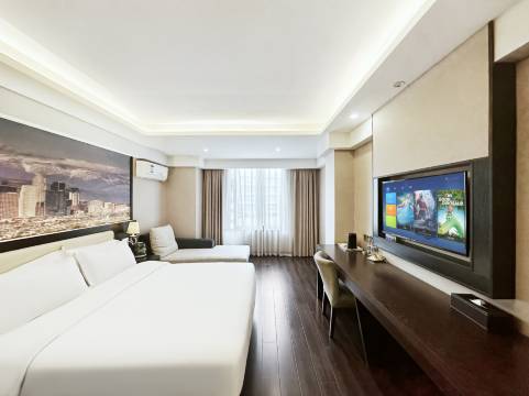 酒店客房按准三钻标准装修,设置了多种单双房型、适合各类商务,旅游、家庭出行等入住需求。床品的被套、床单、枕套等均使用全棉漂白羽毛花60s.*40s.丝光工艺品质,枕头舒适,为您提供舒适睡眠;每一间客房配备液晶电视、洁净封包浴巾、一次性环保面巾、高品质牙具,一次性拖鞋、无线上网、24小时热水、电吹风等。住店旅客享受免费地下车库停车,每一间客房免费提供双流机场的一次接机和一次送机服务,方便乘机出行。