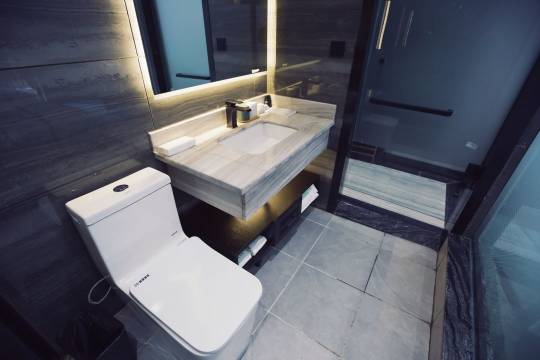 很少写评论,首先前台小姐姐和停车场大叔服务态度非常好,没毛病。这个房间对于这个价位来说小了,但五脏俱全,厕所的门没有贴磨砂,上厕所和洗澡站门口也能看到,虽然是大床房一般是情侣入住,但还是有自己隐私的时候,这个门没有磨砂透明的是一个有点觉得奇怪的点。这些年也大大小小住过很多家酒店,桌椅洗漱台这些地方难免会有脏的地方,这都是能接受的,但这次早上起来准备坐着化妆的时候,一拉开椅子发现上面还有上一位留下的泡面碎渣,我能理解有灰尘或者其他很难洗掉的东西,但是不能接受还有上一位客人入住的痕迹,那就说明并没有用心打扫,这个泡面碎渣也不难清理。没住的朋友可以住这家,服务都很好,但如果要看细节,这个价不太值。