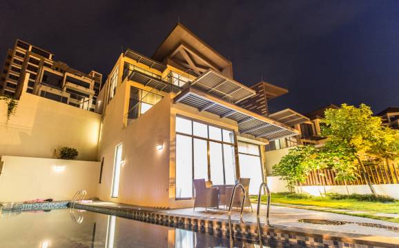 房间格局装修都是比较现代化,无边际泳池很棒,小孩玩得不亦乐乎,大人也轻松,服务满分是小江管家有应必答服务到位,总体是满意的。其他四分是客观问题,旁边太多被丢弃的房子了,野草很多导致晚上蚊虫比较厉害。
