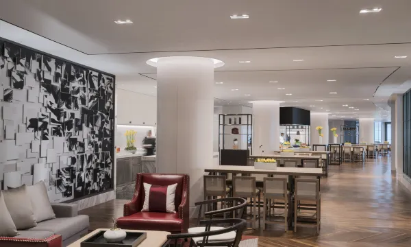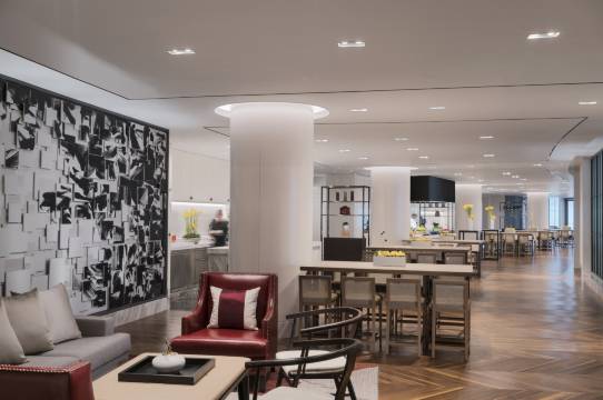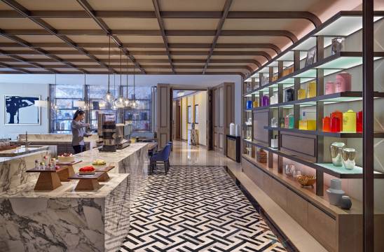 嘉宾轩酒廊为贵宾们提供欧陆式早餐、晚间鸡尾酒和小食及软饮。400平方米的屋顶花园,以优越的视角为宾客们奉上西湖音乐喷泉美景。 汇聚全球特色美食的七个餐厅及酒吧将为客人提供优质、创新和多样性的餐饮体验,为宾客呈现地道的美味佳肴,创造令人难忘的餐饮体验。