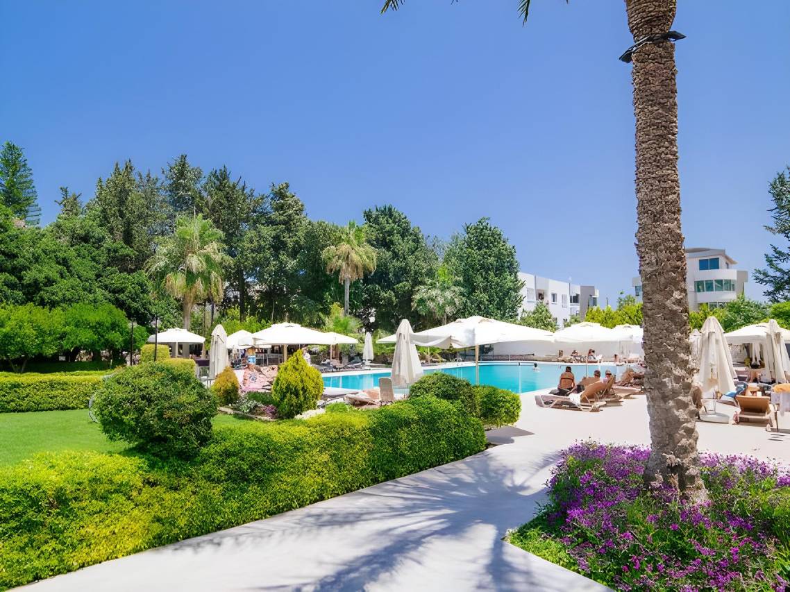 我们在这里住了4天,体验真的很棒。酒店帮我们办理了提早入住,非常贴心。酒店非常干净,一共有三栋楼,房间也很干净,浴室很大。酒店内有两个游泳池,员工都非常亲切友善。从酒店步行到凯里尼亚市中心大约需要15分钟。总而言之,非常满意!