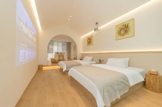 民宿很新,设施全是智能化的,语音控制灯光窗帘(非常值得点赞的是灯光可以单独控制色温和亮度,是真正意义上的全屋智能设备),还有巨幕投影看电影太爽了!装修风格长在了我的审美上,干净整洁,细节到位,洗漱用品用的品控都是很好的,吹风机用的也是徕芬的吹风机,看的出来老板是非常用心的,体验感满分。
