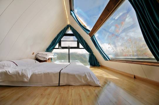 木屋位于川西红枫岭景区内。独栋二层小别墅;一楼客厅卫生间,二楼天窗卧室;内有WiFi、独立卫生间。春秋看红枫、夏天避暑。