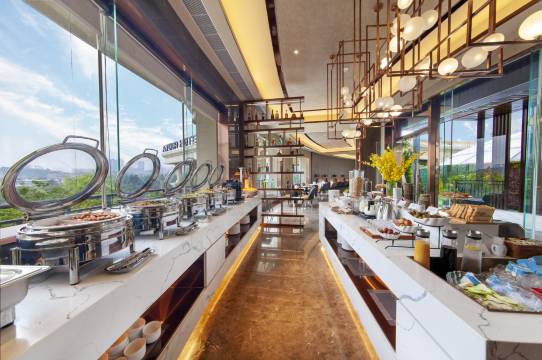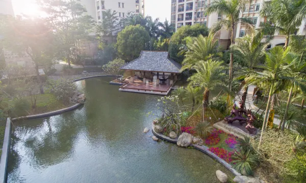酒店园林式环境,设施齐全,房间干净卫生,早餐比较丰富,大堂的书房免费阅读,服务人员态度好,还免费小孩的小玩具,爆米花免费畅吃,大堂对面的池塘可以喂鱼,总体体验不错