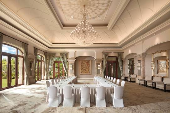 酒店坐落于风景如画的海棠湾黄金地段,酒店为全别墅度假酒店,华丽私密的别墅隐匿于葱郁的热带园林之中,与洁白无垠沙滩仅一步之遥,风光旖旎的海棠湾尽收眼底。【酒店特色】(1)全别墅度假酒店:私密性高,装饰华丽的欧式别墅客房隐匿于葱郁的热带花园中;墙面采用澳洲全进口的砂岩铺面,客房内地面全镶嵌金丝白玉大理石,装饰24K镀金洁具,尽享雅致。(2)管家式服务:万达瑞华私人管家式服务及24小时礼宾服务,尽享“量身 定制”的奢华入住体验。(3)专属设施:大部分别墅设有私家泳池、日光躺椅及花园亭台,配有独立的热带雨林淋浴及宽大的浴缸。部分别墅泳池和按摩池可加温,冬日亦在户外舒适畅游。(4)全新度假早午餐体验:怡园全日制餐厅提供丰盛精致的自助早午餐,并提供特制零点早餐菜品,早午餐营业时间至中午12点,让您享受度假期间无需匆忙起早用餐。(5)别墅内用餐服务:私人定制的别墅烧烤、别墅火锅、泳池漂浮下午茶,足不出别墅尽享私密美好“食”光。(6)特色设施:设有户外泳池,可共享相邻万达嘉华度假酒店设施,如儿童乐园、1291平方米宴会及更多宴会设施。(7)总统别墅:面积3000㎡,私享360平方米的私家户外草坪和150平方米私家泳池紧邻大海,是私人宴会、婚礼场地、婚拍浪漫地之优选。【酒店艺术】十二生肖兽首铜像喷泉,十二生肖铜兽首原本是圆明园海晏堂前水力钟的一部分,是将东方的生肖、时辰和西方的喷泉、计时巧妙结合,十二生肖铜像分别代表全日不同时分,每日依次轮流喷水,正午时分,则同时喷水。呈现了清代盛世艺术、科技综合运用的高超水准,体现了中西文化的完美交融。 十二生肖兽首铜像喷泉以圆明园兽首为蓝本一比一复刻,近距离便能观看中国古代超高工艺水准的铜像细节。兽首使用传统失蜡法制成,外观的颈部、脸部以及 眼、耳、口、舌都为一体铸造,外部曲线流畅、纤毫毕现,其内部也拥有精密结构。凭匠心雕琢,力求还原国宝风貌,驻足海天间,感受强烈中国古典宫廷感。生命女神雕塑喷泉,手握橄榄枝的生命女神雕塑喷泉,象征着繁荣与生命,赋予每一处建筑空间传达故事的可能性,试图把艺术与自然融入在酒店的每一个角落,再以中式美学经典中轴线放置,散发东方韵味的同时,更显灵动与生命力。【别墅客房设施】面积为220平方米以上的独栋别墅可提供华丽宽敞的入住空间,大部分别墅设有私家泳池、日光躺椅及花园亭台;葱郁的植被环绕其间,墙面采用澳洲全进口的砂岩铺面,别墅室内空间设计独到,客房内地面全镶嵌金丝白玉大理石,装饰24K镀金洁具,尽享雅致;别墅内配有液晶卫星电视、胶囊咖啡机。齐备的卫浴间设有独立的热带雨林淋浴及宽大的浴缸;柔软细致的床上用品确保舒适的休憩空间,伴着鸟语花香、清澈蔚蓝的海景开始新一天。