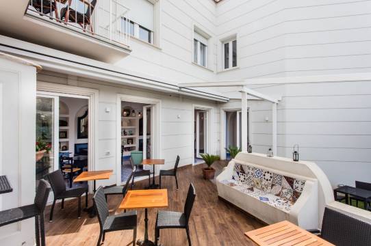 酒店门脸很小,以为是一个不靠谱的酒店,没想到里面很大,二楼还有一个很大的花园,早上退房的时候早餐还没准备好,所以没有品尝他们的早餐,房间很舒服,被子很软很舒服,如果想找索伦托的酒店这个很适合,旁边就是家乐福超市,走路到步行街2分钟,到码头10分钟;到火车站大概700米左右
