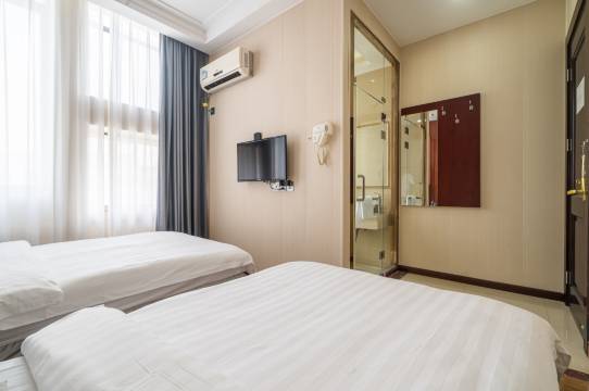 酒店拥有商务大床房、商务双床房、家庭房等多种房型供您选择。空调、独立淋浴间、舒适浴缸、智能门锁、公共区域闭路电视监控系统,亲肤面料等床品,吹风机和洗漱用品为您的睡眠保驾护航。 24小时热水、行李寄存、叫醒服务、快速入住退房、旅游咨询等服务,附近商场、影院、美食一应俱全。 每日清洁安心住,客房布草专业布草洗涤商洗涤,布草一客一换,客用茶杯、日杯、毛巾、浴巾、地巾均高温处理。 本店全体员工竭诚期待您的光临!