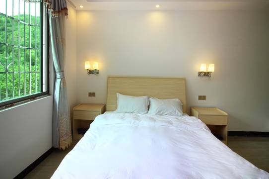 房间很干净,毛巾都是新的,一点多到,阿姨给做了几个菜,农家菜味道不错。热水很好,就是下水有点慢,给准备了一个🧹,这个价格也是可以接受的。去第一峰八公里,很方便,空气清新。。
