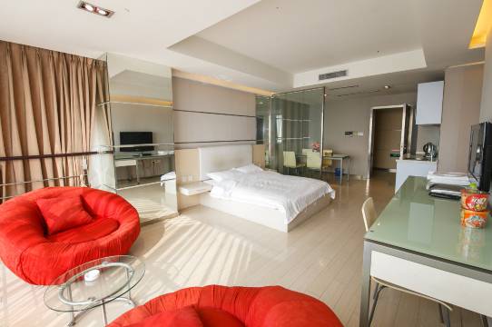 五十平米以上超大面积、大尺寸液晶电视、高品质床上用品、中央空调、全天候热水供应、现代厨房配置(电磁炉、电热水壶、油烟机、冰箱及微波炉)、高速宽带、华数数字电视、全景落地窗,是您外出旅游、商务出差的温馨家园。