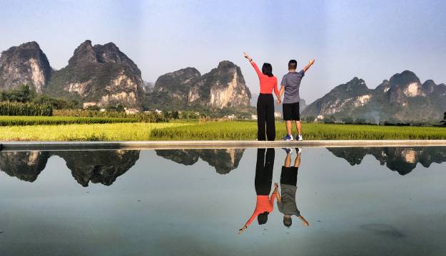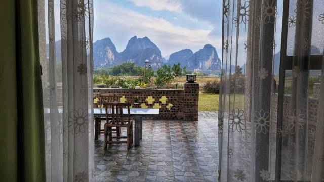 可能是这一带环境最好的店。开阔,稻田、池塘、峰林、日出、阳光。