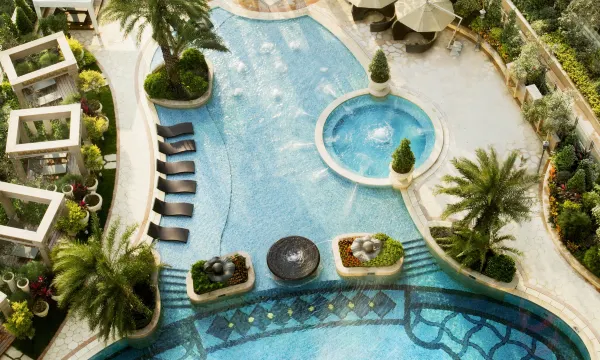 酒店地理位置优越,设计感十足,非常精致,优雅,酒店保养,运营非常好,房间非常舒适,健身房非常好,游泳池很好。