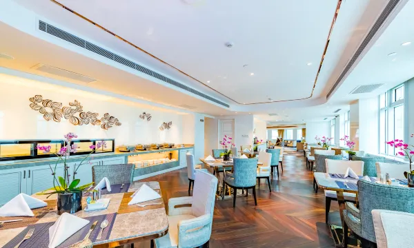 185间智慧客房拥有独立的新风净化系统,为宾客提供宽敞明亮、安心舒适的休憩之所。酒店拥有精准的InnCom客房控制系统;由“艺康中国”提供专业的整体清洁保障服务;客房内特别定制“健康住关爱包”(包含口罩、一次性使用酒精棉片、免水消毒洗手液等)、全方位互动电视智能系统、颇具舒适感的美国丝涟床垫、泰普尔经典感温枕、英国王室御用沐浴品牌Molton Brown等,每一处细节皆在带给宾客健康、愉悦的尊贵之享。住店客人可每天免费享用由智能机器人送至客房的200ml鲜榨橙汁一瓶。