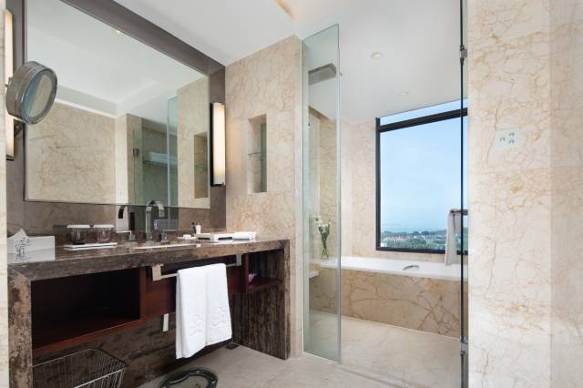 房间非常不错,双人床可以拼成一张八尺大床。很舒服。洗手间很大,关键智能座便不是每家都有的,家庭出游还是很必要的。出行的话,租车自驾很方便,酒店停车位很多。服务也好,送水,送用品都很快。