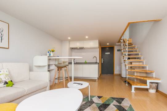 全新装修4.5米,60平复式公寓,简洁北欧风,全新**家私电器,独立阳台,配有厨房,可以做饭,千兆光纤,独立卫生间/淋浴间,豪华大床,带沙发床。夜观小蛮腰风景,周边配套齐全,封闭式酒店管理。距离天河智慧城,科学城近,对面有湿地公园散步游玩,适合公私出差,周末朋友小聚,相信会给您带来轻松愉快的入住体验。小区有各种美食,生活便利店,马路对面即是湿地公园,适合散步放松。位于华观路湿地公园对面,近日航酒店。地铁黄村站4公里。B26、774、564、548、494、78A、582、364、355、902、903公交可到。前台办理入住,地址天河区华观路万科米酷c3栋113铺。