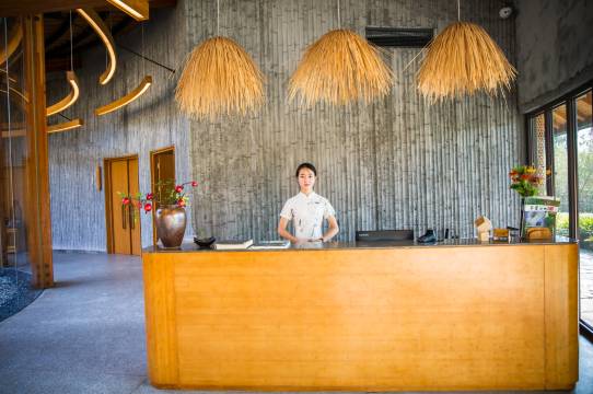 订房后,客服会主动联系加微信,了解需求,因不能加床给孩子在沙发上事先铺好了床;到了后客服小沈直接引导到房间,办入住和退房都在房间,不用去前台,方便;整体而言,环境优美安静,服务细心,卫浴用品是欧舒丹的,洗漱小件品质还可以。满意,还会入住!