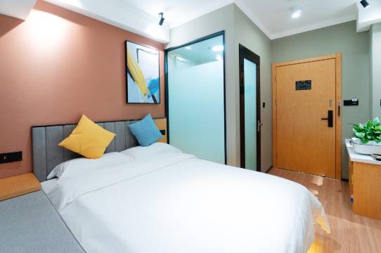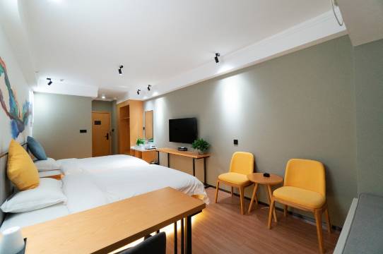 L酒店(郑州北大学城店)客房时尚新颖的风格配以精致温馨的家私,舒适典雅、别具一格,另配有国内知名品牌床垫、酒店客房用品、光纤网络、55寸大屏智能电视、中央空调/集中供暖系统等,让您在任何位置都能有不一样的感受。