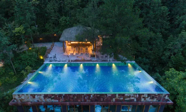 清晨与林鸟相望,夜晚枕星入眠。躺在床上即能欣赏核心景区绝美自然奇观。酒店内设有全日制餐厅、Spa、健身房、无边际泳池及传统自然农耕生态体验区等项目。