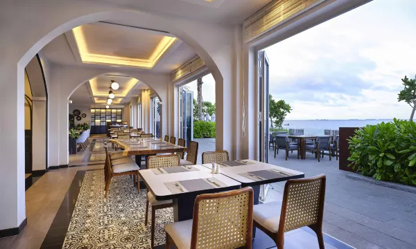 就在海边,环境很好,酒店自带的泳池和露天的餐厅都很漂亮,头顿很适合舒舒服服安安静静地度假,餐厅的吃的也不错!