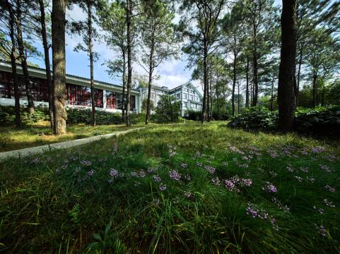 位置不错,周边绿意盎然,地方很大,吃了饭散个步很是舒适,满意