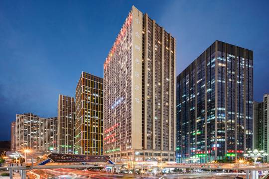 酒店位于贵阳市南明区花果园F区中央商务三号楼。地处市内一环距花果园购物中心及花果园湿地公园仅一步之遥,距地铁站仅需5分钟步行即可到达,距市中心喷水池、大十字繁华地段5分钟车程,距天然氧吧市内森林公园黔灵公园5分钟车程;贵阳小车河湿地公园也仅需10分钟车程。贵阳各风景区十里河滩、孔学堂、花溪公园、青岩古镇30分钟车程;10分钟抵达贵阳北站高铁站、贵阳火车站;30分钟抵达贵阳龙洞堡国际机场,交通十分便利。