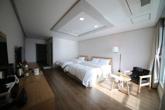 订的海景房,有个小阳台,风景倒还可以,卫生也挺干净的,进房间要脱鞋还拖鞋,但是三人入住房间里只有两双拖鞋,幸好我自己带了一双…离牛岛乘船码头走路十几分钟,从城山日出峰下来也就七百米左右的路程,挺方便的…楼下有家GS25,看评论区说是酒店老板开的,早上去买早饭是个年纪较大的阿姨收银,香蕉牛奶写着买2送1,我们拿了3瓶,一开始刷了我们4瓶,后来看我们一直在核对,就删掉了一瓶,收了3瓶的钱,问她不是买2送1吗,她摇摇手显得很不耐烦,之前看小红书说济州岛有些便利店会多刷东西乱收钱,没想到被我们碰上了,提醒下以后去住的人,收银时候要记得核对