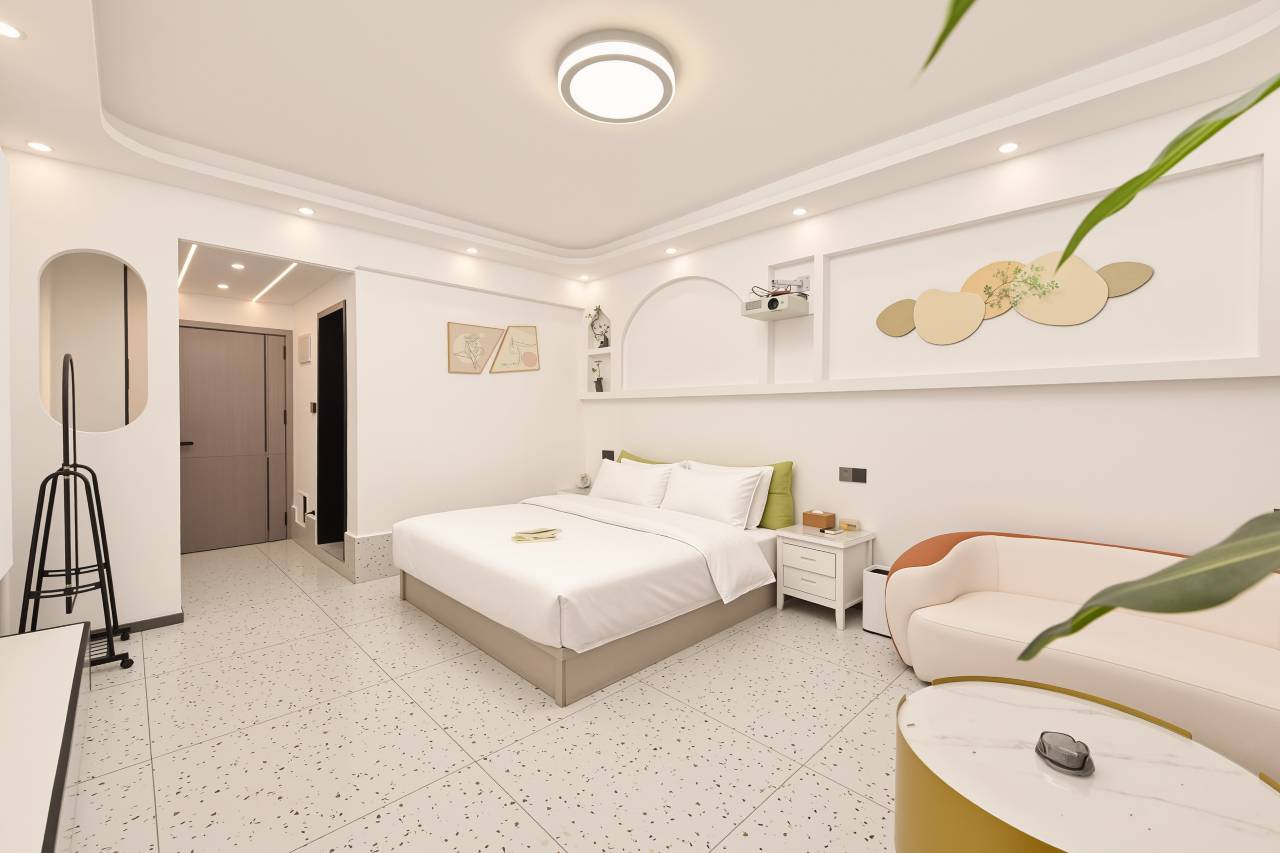 非常漂亮的民宿啊!卫生也干净,周边吃的东西也特别多,玩耍的也多,停车也方便,哈哈哈下次来玩,还住这里!特别适合情侣出来玩住,价格也不贵!