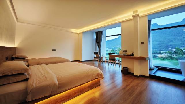 民宿是现代简约风格,客栈共有2层建筑,十余间客房,院落及公共区域面积大,公共休闲区有庭院式花园,茶室,烧烤,山地自行车,棋牌,秋千设施等,房间有超大落地窗,配备空调,液晶电视,舒适床品,高品质洗漱用品等,在房间里即可看到田园庭院美景,呼吸着清新的空气,仿佛置身于青山绿水中,远离城市的喧嚣,畅游在这万峰林中,感受不一样的自然山水风光,是您休闲度假,夏季避暑的不二选择,兴义顺德公期待与你相遇!