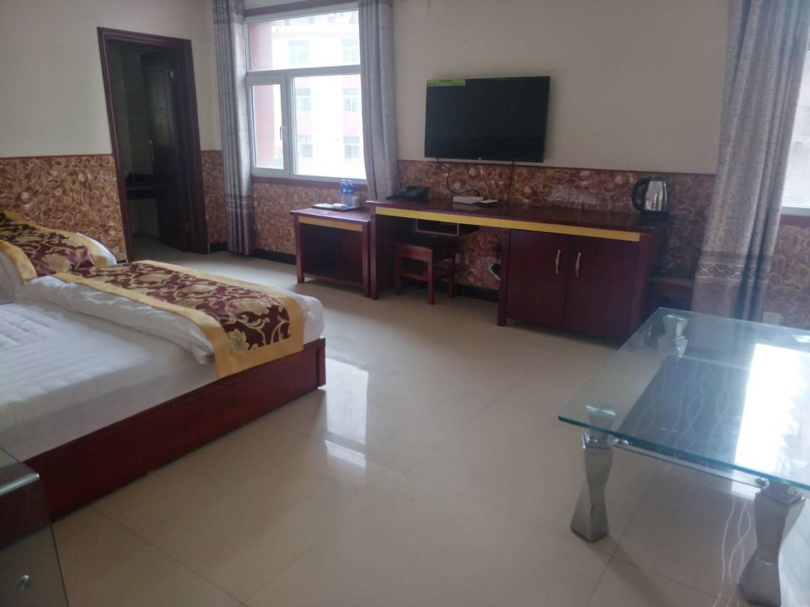 大通鑫盛商务宾馆内设大床房、双人标间、双人普通间、普通三人间、豪华套房、以上客房提供独立卫生间,全天24小时供应热水,无线网络全覆盖。