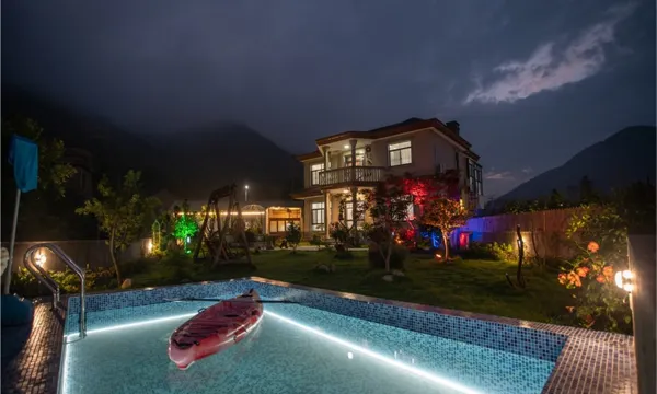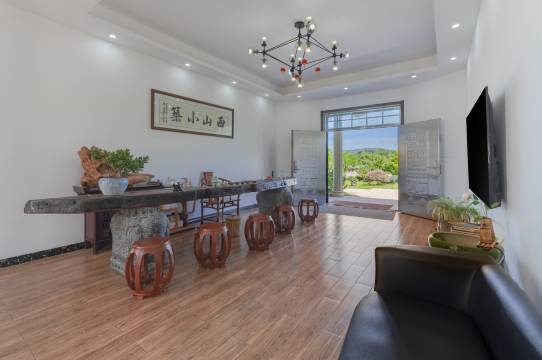 民宿建筑面积约为400平方,设置了客房、茶室、阳光房、酒吧、独立棋牌室、独立厨房、餐厅、钓鱼池、游泳池等设施。作为团建、露营、轰趴、跨年基地都非常合适。