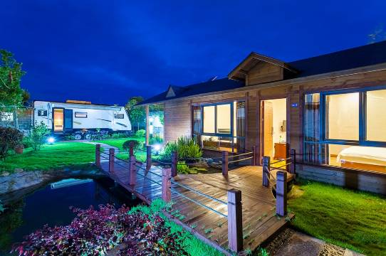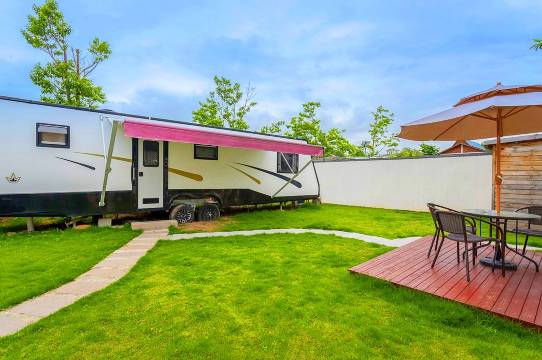 房车内设有电视机、冰箱、空调、沙发、桌椅、卫生间、烧水壶、吹风机等设施,配套的儿童设施用品完善,特别适合举家出游。露营地内还有木屋套房、亲子套房等房型,一院一景,院院串联。房车内,是家一般的舒适与温馨,房车外,是大自然的清新与宁静。适合家庭亲子、浪漫蜜月、小型团建等各式活动,是度假休闲的理想去处。