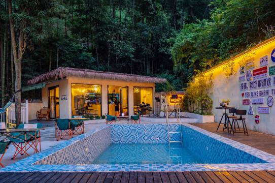 这里可以露天K歌、看电影,可以去茶园游步道散步,赏茶园美景,可以去小溪看瀑布玩水。可以跟好友在泳池边吹着凉风喝着咖啡,可以让长辈自己在茶室自泡自饮,可以让孩子在儿童乐园玩耍,阅读区看书写作业,可以和家人们自主烧烤,可以在亭子下品尝土家美食。民宿,一个悠闲惬意的所在,让您在这里休闲减压。