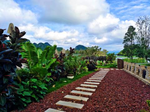 订的一楼观景亲子房,从房间内即可看到👀喀斯特地貌景观及大片水面。