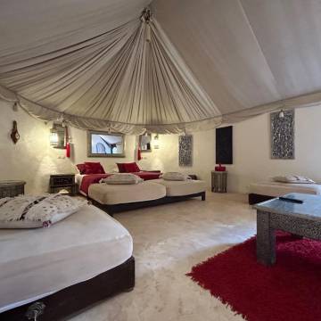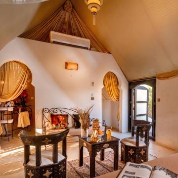 莱斯亚丁斯迪希尔摩洛哥传统庭院住宅提供一流的服务和设施,让客人尽享舒适。您在整个住宿期间均可免费使用 Wi-Fi,保持即时通信。 如果您需要往返机场的交通服务,住宿可以在您入住日期前进行安排。使用住宿提供的交通服务,轻松探索马拉喀什的精彩。 开车前来的旅客可享受免费停车。通过前台提供的礼宾服务,轻松计划您的日常活动,满足您的旅行需求。通过住宿的票务服务,您可以轻松获得城市热门景点的门票。 大堂设有精美的壁炉,您可以在酒店温馨的大堂放松身心,感受温暖。 莱斯亚丁斯迪希尔摩洛哥传统庭院住宅提供洗衣服务,让您穿着喜欢的服装,展现您**的一面。需要放松一下吗?您的客房可提供客房送餐服务,让您的入住更加舒适愉快。请注意,为确保所有客人能够享受更新鲜的空气,住宿内严禁吸烟。您仅可在指定吸烟区吸烟。 莱斯亚丁斯迪希尔摩洛哥传统庭院住宅的每间住宿都经过精心打造和装饰,为您创造温馨舒适的氛围。 莱斯亚丁斯迪希尔摩洛哥传统庭院住宅的部分客房提供空调或寝具用品,以满足您的需求,提升您的舒适度。 莱斯亚丁斯迪希尔摩洛哥传统庭院住宅让您以美味的自制早餐开始每一个新的一天。 每天在住宿内的咖啡厅享用一杯咖啡,开启您美好的假期清晨。 酒店提供各种精美餐点,确保您随时可享用。顾虑您的用餐选择吗?别担心!莱斯亚丁斯迪希尔摩洛哥传统庭院住宅提供一系列饮食选择,旨在满足不同口味。轻松体验美妙的夜晚!住宿提供娱乐设施,让您不必离开住宿,便可享受一个愉快的夜晚。 莱斯亚丁斯迪希尔摩洛哥传统庭院住宅提供各种一流的休闲设施供客人享用。 在您入住期间,别忘了抽出些时间体验这里随处可见的海岸。经过漫长的一天后,您可以前往水疗设施放松身心,恢复活力。 纵情跳入泳池,开启您的完美假期。莱斯亚丁斯迪希尔摩洛哥传统庭院住宅致力于确保客人的舒适。您可以穿着泳衣在住宿的池畔酒吧享用您喜爱的饮料。