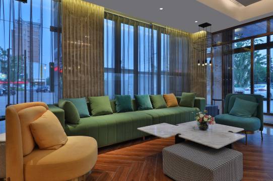 房间不是插卡取电的,这点觉得很棒,灯光的调度也很棒,有三种模式可以选择。窗帘是电动的,床头就有按钮。早餐也很不错,选的是和善园,俩包子,一个鸡蛋,一瓶酸奶和小米粥,安排人直接送到房间里,服务很棒!前台小姐姐不仅好看,而且很温柔!点赞,下次还会选择。