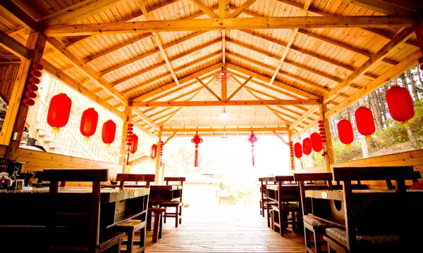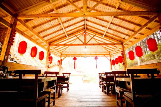 半山腰上的森林小木屋,环境幽静。距离雾灵山景区南门和兴隆溶洞开车都不远。餐厅里的农家菜做的味道很好。