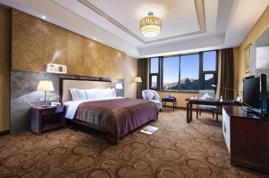 饭店拥有豪华套房、商务客房、藏韵精品客房等四百余间,贵宾楼客房弥散式供氧,确保舒适睡眠;全饭店WIFI覆盖,免费使用;11个不同类型的会议室可承接各类商务会议,其中吉祥多功能宴会厅,可同时容纳800—1000人宴会、会议举办。饭店经营川、藏、粤和法式西餐,喜马拉雅藏宴歌舞伴餐是一种创新,更是一种传承;饭店注重安全,一应设施设备均符合国家标准。