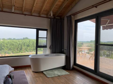 环境:房间有超大露台和落地窗。晚上很幽静。早晨被鸟鸣唤醒,窗外都是风景。民宿内院子也很雅致。离四顶山很近,徒步登顶,来回一小时足够了。