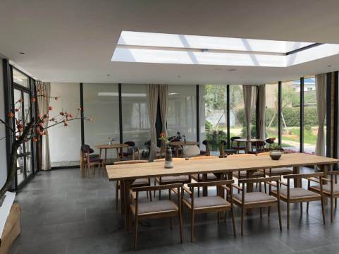 整个民宿被四周的青山绿松包裹着,更像是一个私家别院,白墙青瓦与四周的青山绿水勾勒出诗情画意的田园气息,像及了与世外隔绝的世外桃源的模样,进入民宿大门后,满眼皆是绿色,在院落里随处可见园林的设计元素,一花一草一木一石之间都融入了江南园林的味道,简洁又不失设计感